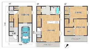 物件キーワード ・新築戸建・3LDK・木造・3階建て・鳥飼西